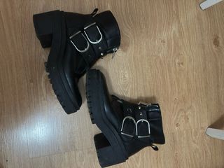 Botas de estilo motero con detalle de hebilla metálica. - Cierre lateral con cremallera. - Tira con hebilla y tachuelas. - Suela gruesa.