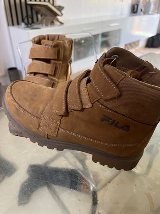 Botas FILA de invierno para niño, color marrón. Ideales para los meses más fríos. - Cierre con velcro y cremallera. - Suela resistente. - En buen estado, con ligeras señales de uso.