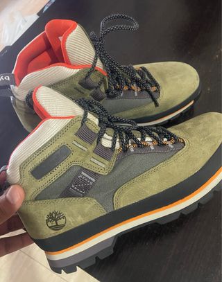 Botas Timberland ReBOTL en color verde oliva y gris. Ideales para cualquier aventura. - Diseño moderno y cómodo. - Material de alta calidad. - Perfecto estado.