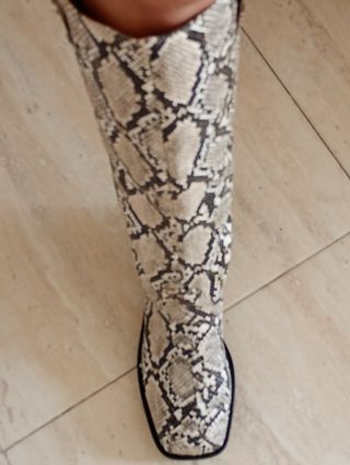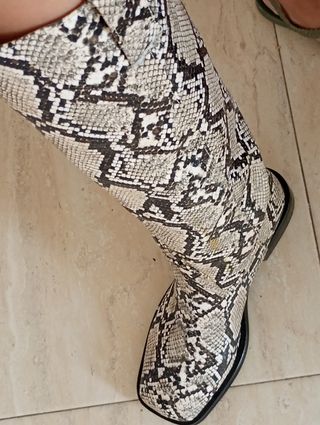 Botas altas con un llamativo estampado de serpiente. - Diseño de serpiente en tonos beige y gris. - Punta cuadrada.