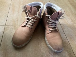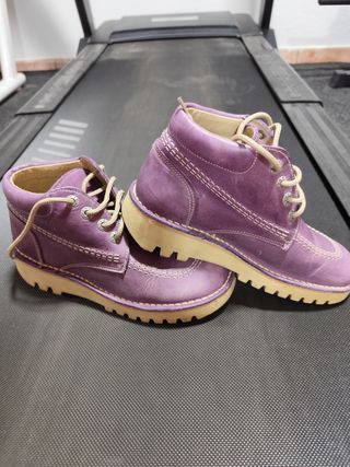 Botas de serraje color morado para niña. Ideales para el otoño. - Son de estilo casual. - Están fabricadas en ante. - Tienen cordones de color beige. - Se encuentran en buen estado.
