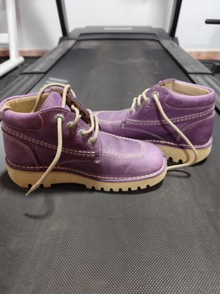 Botas de cuero con un llamativo color morado y cordones marca Arancha. Están prácticamente nuevas,mando más fotos sin compromiso. - Material: Cuero - Color: Morado - Cierre: Cordones