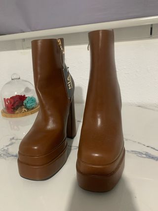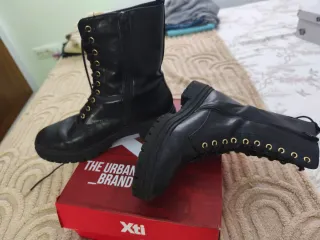 Botas de mujer de la marca Stradivarius. - Diseño robusto con suela track. - Detalle de logo en la plantilla. - Talla 37. una de ella en un lado está un poco la piel levantada