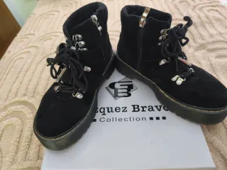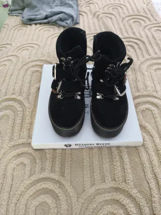 Botas de estilo moderno con cordones y hebillas. - Diseño con plataforma. - Material exterior tipo ante. - Cierre lateral con cremallera.