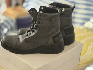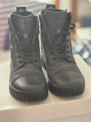 Botas de piel de la marca Diesel. - Color negro. - Diseño robusto y moderno. - Cierre con cordones. -Talla 41 (26,5cm) Equivale a un 42 de otras marcas No ofertas absurdas, son de piel, sirven para moto o montaña.