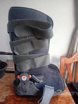 Bota ortopédica diseñada para el cuidado de esguinces y otras lesiones. - Cierre mediante velcros. - Ajuste regulable en la parte superior. - Suela antideslizante. Se vende por 22 eu xq no se puede ajustar bien ,habria que echarle algun producto para que funciona las ruletas de los tobillos,estan fijas,22 eu.