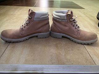 Botas tipo Panama en color beige y marrón, en excelente estado, casi nuevas. - Talla 45. - Diseño robusto y cómodo.