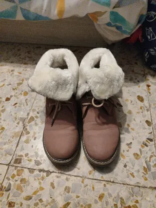 Botas de invierno marrones con forro interior. - Detalle de pelo en el cuello. - Suela gruesa y antideslizante. - Diseño cómodo y cálido.