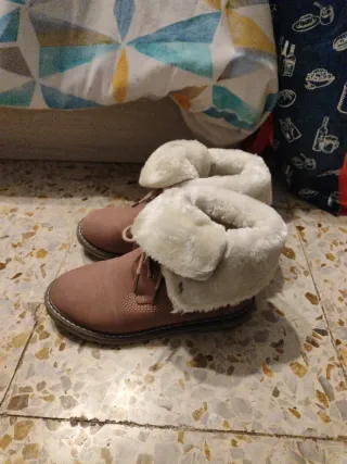 Botas de niña con un diseño moderno y cálido. - Exterior en tono rosa. - Forro interior de pelo blanco.