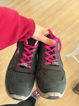 Botas de trabajo Diadora para mujer. - Color principal negro con detalles en rosa. - Diseño italiano. Usadas en un par de ocasiones. Tiene la puntera reforzada.