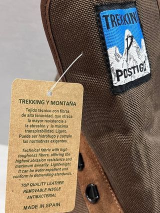Botas de trekking de piel, ideales para tus aventuras al aire libre. Están nuevas y listas para estrenar. - Fabricadas con piel de primera calidad. - Plantilla extraíble. - Tratamiento antibacteriano. - Suela de goma resistente.