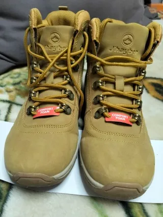 Botas de montaña J'hayber en color camel y talla 36. Perfectas para senderismo o uso diario. - Cierre con cordones. - Detalle de etiqueta Comfort Foam.