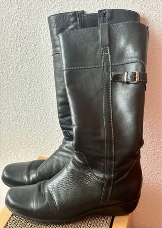 Botas altas con tacón, ideales para complementar cualquier atuendo. - Material sintético. - Tacón grueso y plataforma. - Cremallera lateral para facilitar el acceso. - Caña flexible Usadas en dos ocasiones.