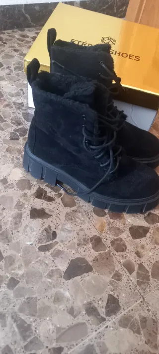 Botas de estilo moderno, listas para estrenar. - Material exterior de ante. - Suela de goma resistente. - Diseño tipo botín. *"* Precio original 79,90 euros. Nuevas, a estrenar, no han sido usadas. Han estado guardadas, así que se mantienen limpias, intactas. Talla 43. Muy bonitas.***