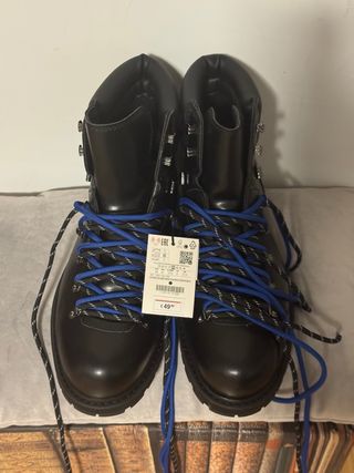 Botas de montaña de la marca Pull&Bear. Talla 43. Producto nuevo, con etiquetas, a estrenar de fábrica. - Color principal negro con detalles multicolores en los cordones. - Talla 43.
