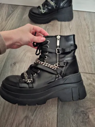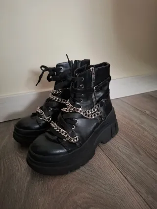 Botas de estilo moderno con plataforma y detalles de cadena. USADA UNA VEZ - Cierre de cremallera y cordones. - Correa con hebilla. - Diseño de plataforma gruesa.