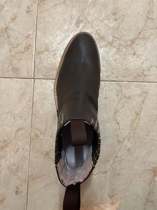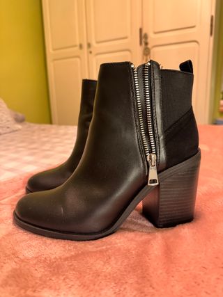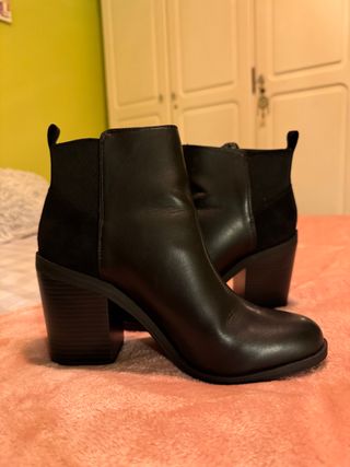 Botas de estilo Chelsea con un diseño moderno y cómodo. Las he llevado 3 veces, me rompí el Aquiles y ya no puedo llevar botines. - Material exterior de ante - Suela gruesa y tacón cuadrado. - Paneles elásticos laterales para facilitar su uso. - Tirador en la parte trasera. - Precio original 80€