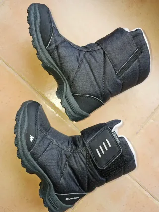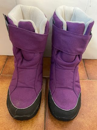 Vendo botas de nieve Quechua para niños o niñas, en excelente estado. Talla 35 Son impermeables (o waterproof, que queda mejor), cómodas (con cierre de velcro), suela antideslizante y muy cálidas... Asi no terminaréis el día enfadados porque se le hayan mojado los pies... Están como nuevas, con escaso uso (no más de 5-6 ocasiones). Muy limpias, impecables. Por qué gastarte el doble en algo que se van a poner tres veces en invierno??? Entrego en mano en Cuarte de Huerva o Zaragoza.