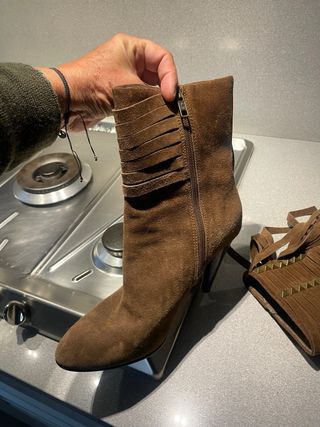 Botines de ante marrón de la marca Ash súper cómodos. Los he usado poco, se puede ver en lo poco que esta gastada la suela del tacón.