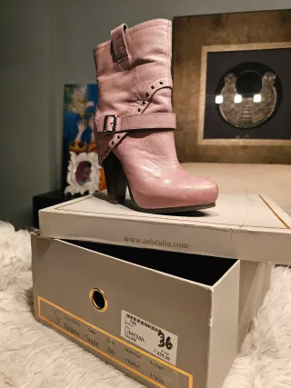 Botines de tacón alto de la marca Ash. Son el nº 37 pero tallan un poco grandes. Con plataforma interior. Súper cómodos. Material piel. Tacón fino. El tacón tiene alguna rozaduras. Sin caja original
