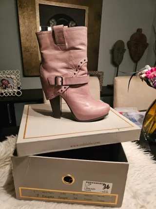 Botines de piel talla 40,tienen una piel suave, maravillosa,tacón de madera de 9 cm, quedan preciosos puestos. Los vendo por qué ya no aguanto los zapatos de tacón.