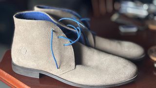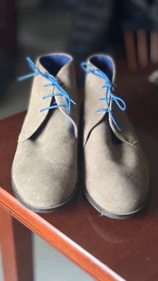 Botines de ante El Ganso en talla 46. Un calzado versátil con un toque de color. - Material exterior de ante. - Forro interior azul. - Cordones de color azul. - Detalle de logo circular en el lateral. - Solo usado una vez