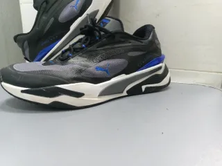 Botines Puma con un diseño moderno y detalles llamativos y tienen 2 semanas de uso me ivan pequeños me costaron 89€ - Combinación de colores negro y azul. - Logo de Puma en los laterales. - Cordones negros.