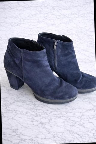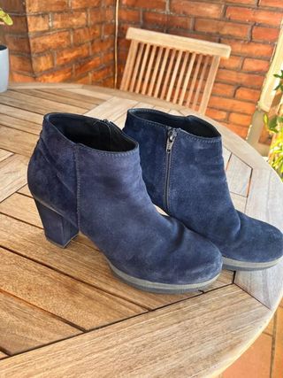Botines de serraje en color negro y azul. - Material exterior de serraje. - Cierre con cremallera lateral. - Tacón grueso y plataforma delantera. Botines azul:30€ Botines negro: 30€ Botines azul y negros (los dos pares):50€ Se venden juntos o por separado.