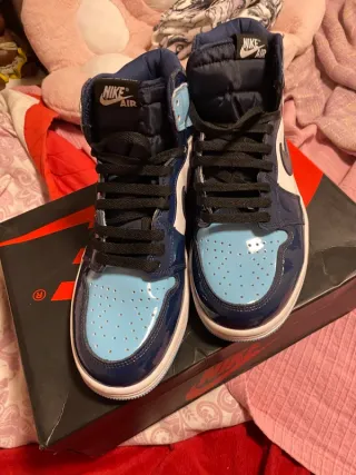 Estan usados pero en buen estado, son azules con los cordones rojos, talla 37