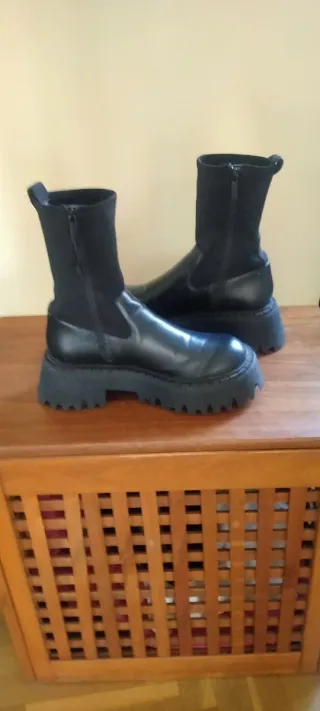 Botas de estilo moderno con plataforma robusta y caña elástica. - Diseño de caña baja. - Cierre de cremallera lateral. - Suela gruesa con buen agarre.
