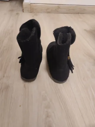 Tipo ante, con elásticos laterales para ajustarlo en el tobillo. Tacón ancho de 9cm. Poco uso. Talla 39. Precio original 30€.