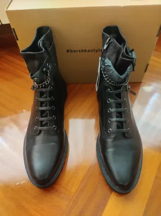 Botines de la marca Bershka en talla 38, completamente nuevos. - Diseño moderno y llamativo. - Acabado brillante. - Cierre con cordones y cremallera lateral.