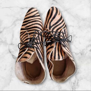 Botines con cordones y plataforma. Num.40 (medidas en la foto de la suelas) confección en distintos materiales: pelo, naranja, ante morado, print en pelo. Muy poco uso, en perfecto estado .