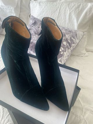 Botines de terciopelo verde de Bimba&Lola. Tacón 10cm