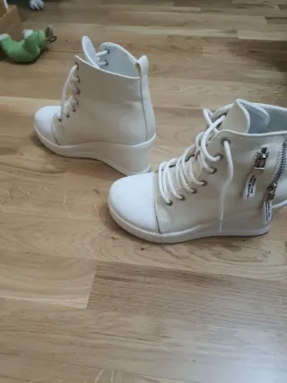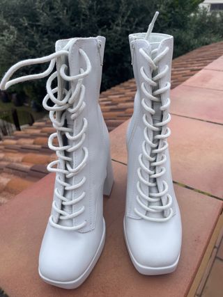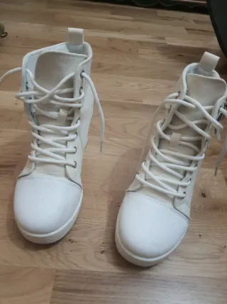 Vendo botas blancas con plataforma de la marca Bosanova. Están en muy buen estado, usadas muy pocas veces. Son muy cómodas y combinan con muchos estilos por ejemplo: (casual, urbano, etc.). * Color: blanco con cordones negros. * Suela gruesa tipo plataforma. * Estilo: botas militares / combat. * Incluye caja original. * Estado: muy bueno, casi nuevas. Perfectas para otoño e invierno. Las vendo porque no las uso. 📦 Hago envíos por Vinted o Wallapop. 💬 Si tienes alguna duda, escríbeme sin problema. 💰 Negociable.