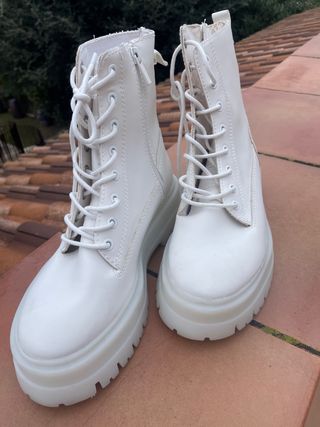 Botines de la marca ZARA en color blanco. - Cierre con cordones. - Detalle de logo en la plantilla.