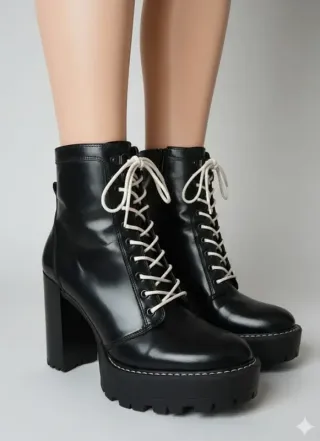 Botines con un diseño moderno y versátil, perfectos para la temporada. - Cierre combinado de cremallera y cordones. - Suela gruesa y llamativa. - Caña alta.