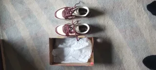 Zapatillas Converse tipo botín en muy buen estado, casi nuevas. - Suela de goma marrón. - Parte superior blanca.