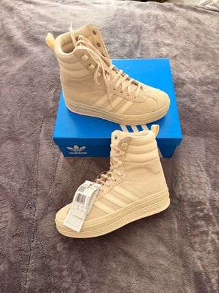 ✅Adidas Gazelle Boots - Edición Beige/Blanco Talla 38.5 (Mujer). PRECIO NEGOCIABLE Originales, compradas en tienda oficial Adidas. Incluyo fotos de ticket de compra, si lo necesita. 👟Estado:Nuevas a estrenar con etiquetas ✅📦Hago envios seguros en menos de 12-24h. Cuentan con su caja original y etiquetas • Suela completamente impoluta, sin uso. Material ante premium con logo Adidas Originals en la lengüeta. 6 Detalles: Modelo Adidas Gazelle Boots muy buscado.📈 • Colorway beige con bandas blancas.⚪️⚪️ • Logo en Lateral Gazelle, logo Adidas Originals en lengüeta. •Suela clásica de goma. Si quieres más fotos o medidas, avísame 😊.