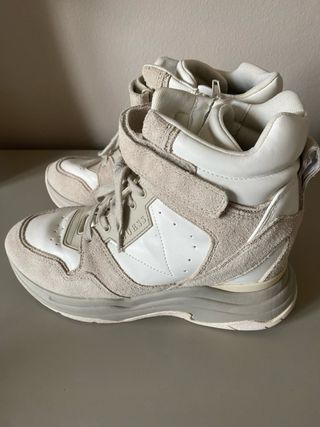 Zapatilla botín cuña Guess beige y blanca