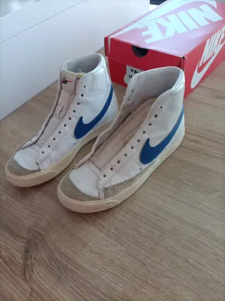 Zapatillas de caña alta de la marca Nike. - Diseño clásico en blanco y azul. - Materiales de calidad.