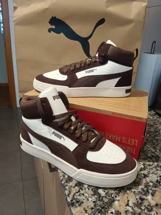 Zapatillas altas de estilo urbano con un diseño moderno. - Combinación de colores marrón y blanco. - Cierre con cordones. - Detalle del logo de Puma.