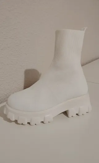 Botín tipo calcetín, sin estrenar. - Diseño moderno y cómodo. - Suela gruesa y resistente. - Tejido elástico.