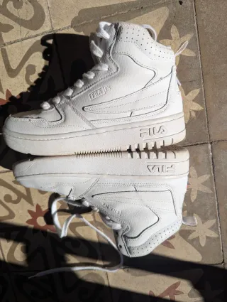 Botines de la marca Fila en color blanco, talla 37. - Diseño de caña alta. - Cierre con cordones. - Detalle de perforaciones en la parte superior.