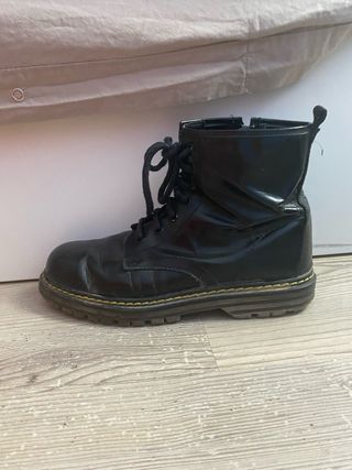 Botín cordones y plataforma ( 3 cm.) Tacón cuadrado: 6 cm. Largura total de la suela: 24 cm. Talla 40 pero corresponde a un 39. Por eso los vendo. Nunca los estrené. Material: PVC