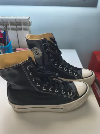 Zapatillas de caña alta de la marca Victoria. Están poco usadas, aunque la goma blanca se ensucia enseguida. - Color negro. - Cierre con cordones. - Suela de goma blanca.