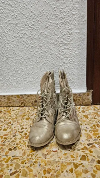 Botines dorados con encaje blanco