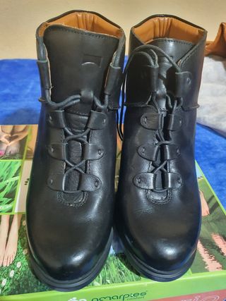Botines estilo camperos, usados solo una vez. Se encuentran en perfecto estado. - Cremallera lateral para facilitar el calce. - Tacón grueso para mayor comodidad. - Diseño moderno y versátil.