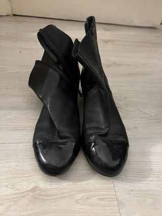 Botines en color negro. Un básico para tu armario. Poco uso porque son estrechas para mis pies. - Diseño de caña media. - Detalle de pespuntes decorativos en la caña. - Acabado liso en piel.