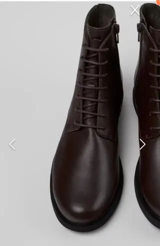 Botas estilo botín de la marca Camper, modelo Ariel. - Cierre con cordones y cremallera lateral. - Diseño moderno y versátil. Tienen uso pero aun les queda mucha vida. Me ha crecido el pie y ya no me va bien. Precio original: 180 euros